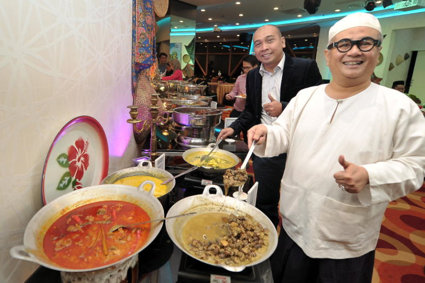 Meor Shahril Anuar Ahmad Rathuan (belakang) bersama Chef Ismail pada pelancaran 'Bufet Ramadan' 2016 di Menara KL, Jumaat. Foto: Bernama