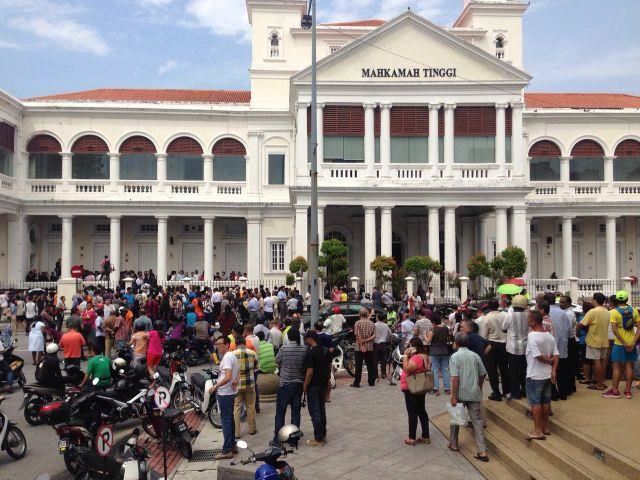 9.46 pagi: Beberapa ratus orang dilihat berlegar-legar di sepanjang Lebuh Light di sebelah bangunan mahkamah, tetapi tidak ada kain rentang dikesan. Apabila ditanya, polis berkata mereka diarahkan untuk hanya membenarkan mereka yang mempunyai urusan mahkamah dan petugas media masuk kawasan bangunan mahkamah.