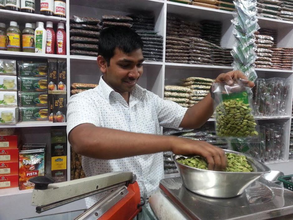 Teruja melihat rempah ratus. Rempah kari ayam, kari ikan, masala, tandori, rasam,rempah tumisan dan pelbagai jenis teh menyebabkan saya dan rakan-rakan rambang mata untuk memilih. Terasa semua hendak dibawa pulang. Sebelum kembali ke penginapan, singgah sebentar di kedai runcit berhampiran kerana ada antara rakan yang mahu membeli buah-buahan seperti anggur, pisang dan limau.