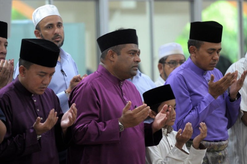Pengerusi Tabung Haji (TH), Datuk Seri Abdul Azeez Abdul Rahim (tengah) mengaminkan doa selepas selesai solat jenazah ayahandanya di Masjid Abu Bakar Al-Siddiq SS19 Selasa. Allahyarham Rahim Pakir Muhamad, 90 meninggal dunia di Subang Jaya Medical Centre kerana sakit tua. -fotoBERNAMA
