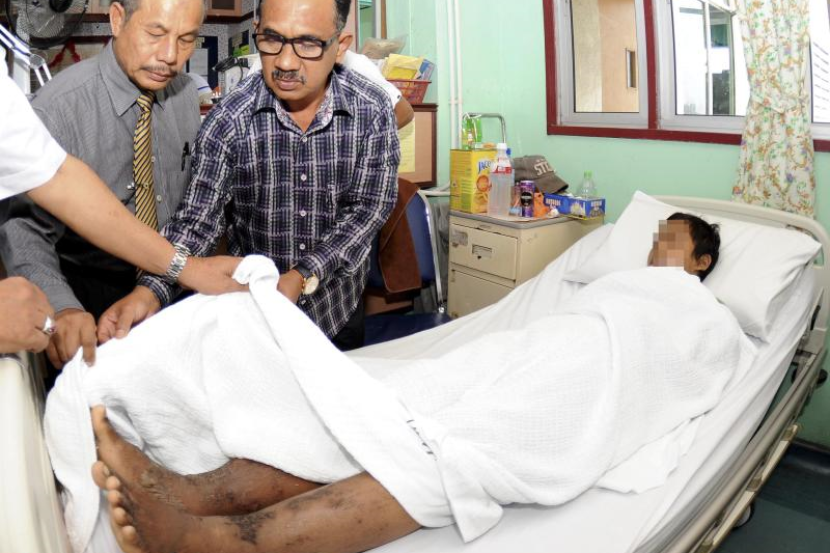 Hasil pemeriksaan, doktor mengesahkan wujud kesan penderaan daripada bahagian paras pinggang hingga bahagian atas mangsa.