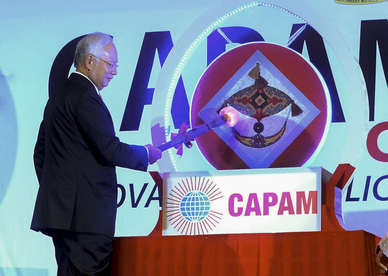 Perdana Menteri Datuk Seri Najib Tun Razak memalu gong sebagai simbolik perasmian Persidangan Dwitahunan Pertubuhan Komanwel bagi Pentadbiran Awam dan Pengurusan (CAPAM) 2016 di Pusat Konvensyen Antarabangsa Putrajaya (PICC), Khamis.