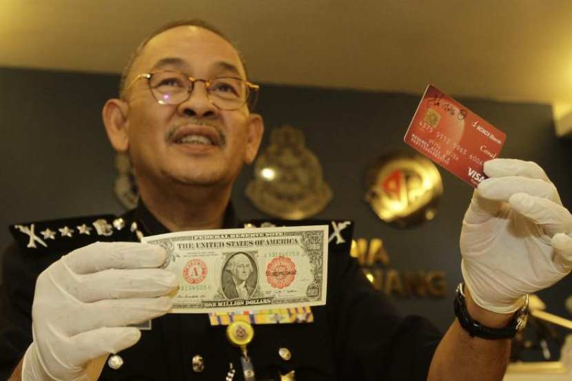 Beliau berkata susulan penahanan itu, polis merampas 104 keping mata wang USD1 juta setiap keping dipercayai palsu, pelbagai mata wang lain, cek bank, kad perniagaan dan beberapa dokumen perjanjian.