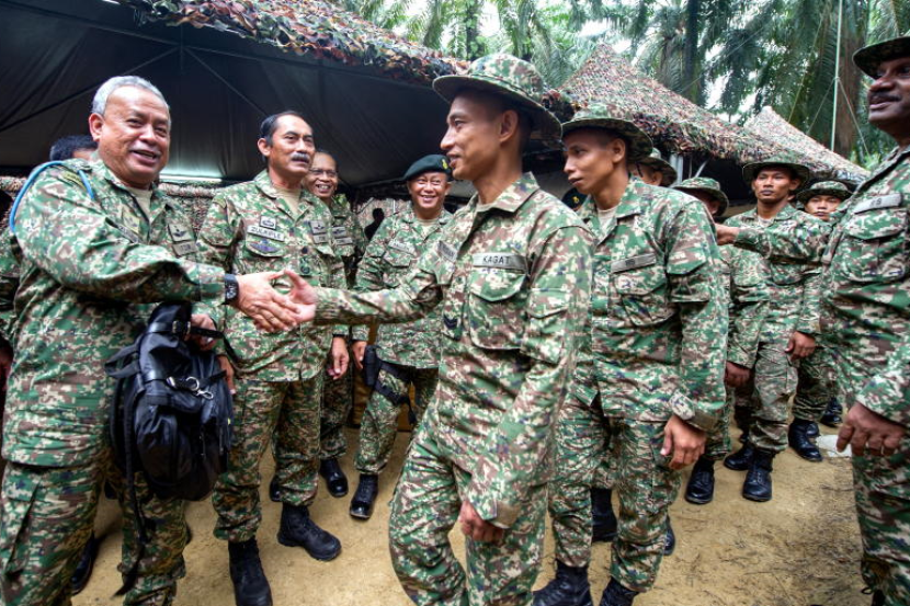 Zulkifeli bersama anggota tentera di Pos Tok 'O Rantau Panjang pada Julai lalu. -fotoBERNAMA