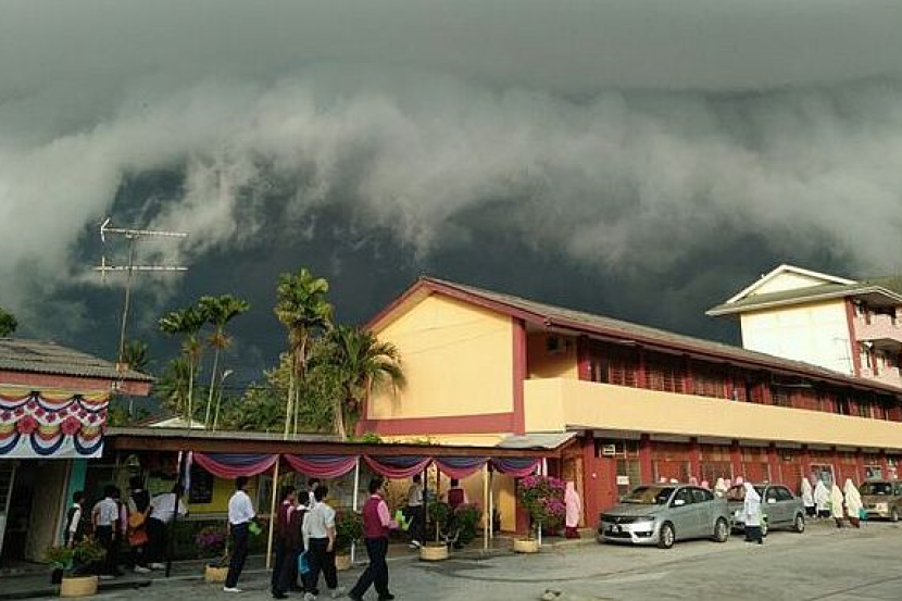Formasi awan luar biasa berbentuk 'ombak besar' dan 'puting' beliung itu berlaku antara pukul 7.30 hingga 8 pagi.