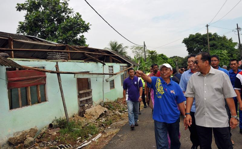 Menteri Besar Johor, Datuk Seri Mohamed Khaled Nordin turut turun padang meninjau keadaan mangsa ribut.