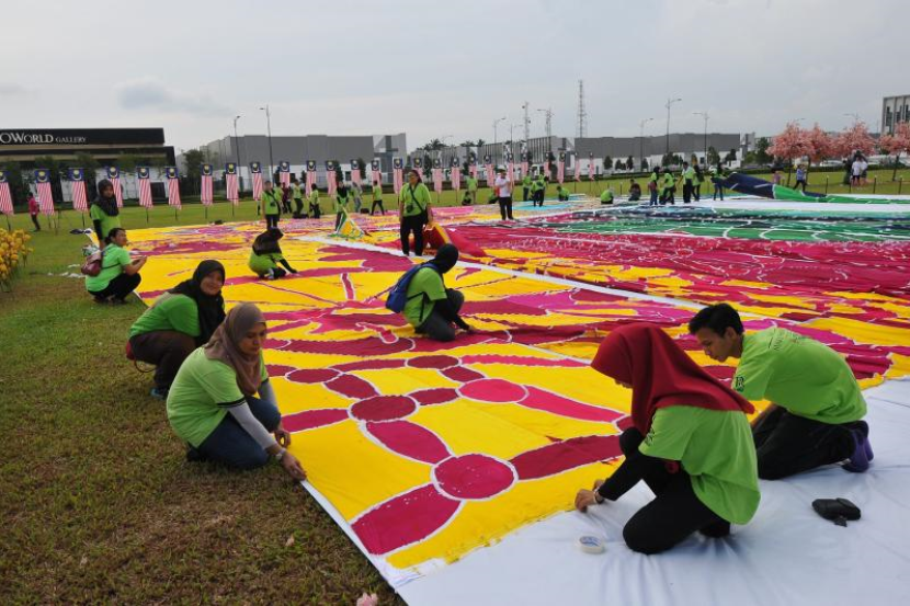 Acara itu melibatkan lebih 600 pelajar Politeknik Ibrahim Sultan yang berusaha untuk menyiapkan lukisan batik berukuran panjang 25 meter dan lebar 25 meter.