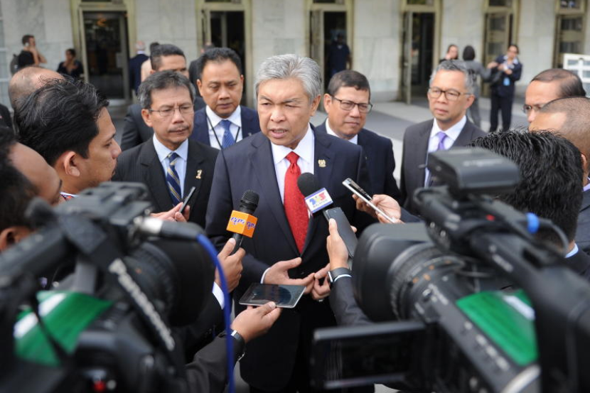 Timbalan Perdana Menteri Datuk Seri Dr Ahmad Zahid Hamidi bersama wartawan Malaysia selepas menyampaikan ucapan dalam Mesyuarat Peringkat Tinggi mengenai situasi di Syria pada Majlis Keselamatan Pertubuhan Bangsa Bersatu (PBB). -fotoBERNAMA