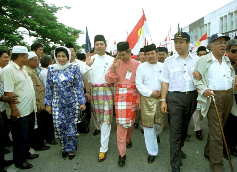 Ahmad Zahid (dua dari kanan) selaku Ketua Pemuda Umno mengiringi calon BN, Kamaruddin Mohd Nor (tengah) pada pilihan raya kecil DUN Pasir Putih pada 1997. Turut hadir Pengerusi BN Kelantan ketika itu, Tan Sri Annuar Musa dan Ketua Wanita Umno, Datuk Seri Dr Siti Zaharah Sulaiman.