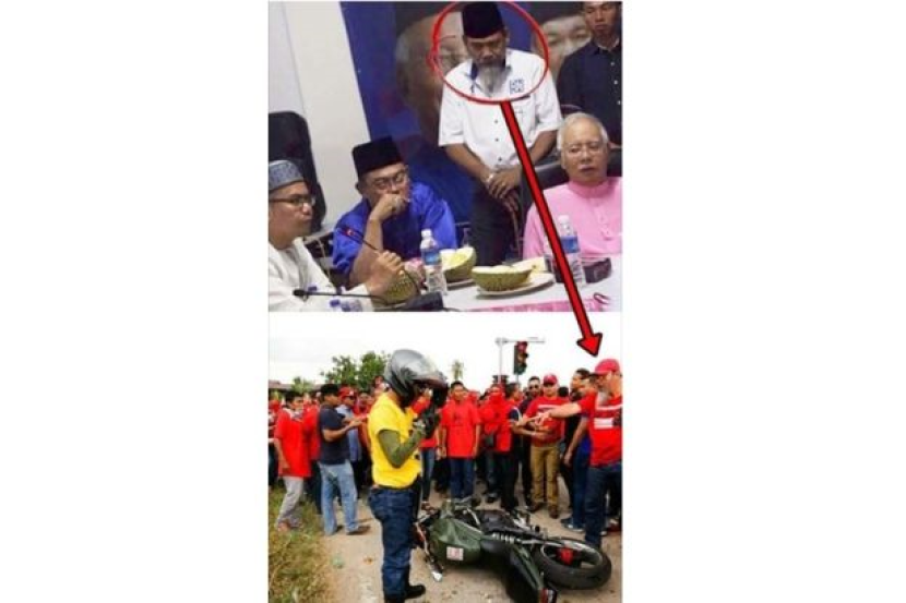 Pada masa sama, turut tersebar gambar yang memperlihatkan seseorang yang mirip wajah lelaki berjanggut dan bertongkat itu sambil memakai baju putih berlogo BN berada bersama-sama Najib, Noh dan Jamal dalam satu majlis.