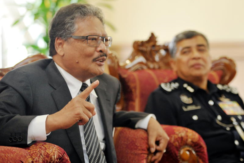 Peguam Negara Tan Sri Mohamed Apandi Ali ketika bercakap kepada media selepas menyampaikan ucapan di seminar perundangan tertutup anjuran Institut Latihan Kehakiman dan Perundangan (ILKAP) di institut itu, Isnin. Turut hadir Ketua Polis Negara Tan Sri Khalid Abu Bakar (kanan).