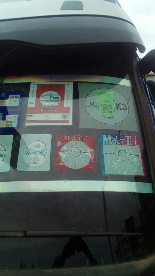 Kesemua lori tersebut mempunyai pelekat yang sama dan dipercayai dilindungi sindiket ini.