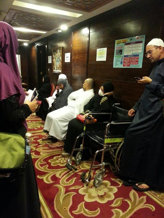 Jemaah mendapatkan rawatan di klinik yang disediakan Tabung Haji di Hotel Safwa Royale Orchid Makkah.