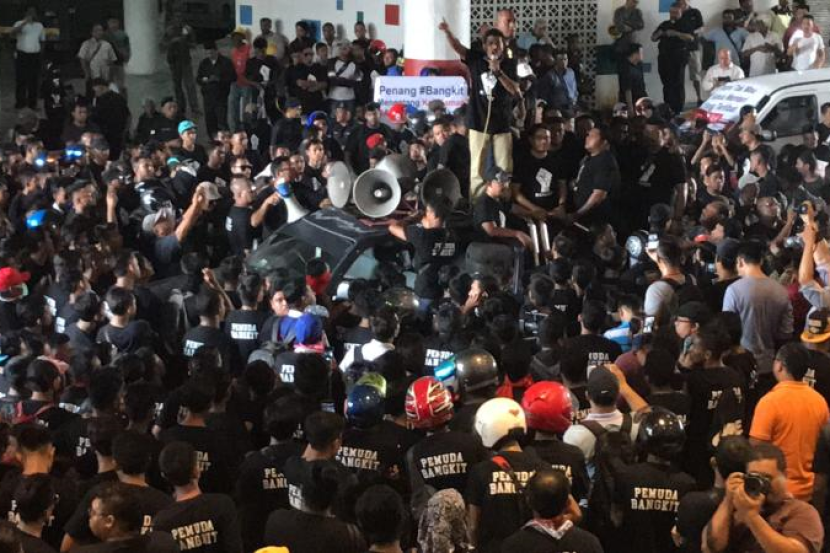 Peserta Himpunan Pemuda Bangkit itu mula berkumpul di Menara Umno negeri pada 1.30 tengah hari dengan semuanya berbaju hitam sebelum mereka berarak ke Komtar untuk menyerahkan memorandum itu.