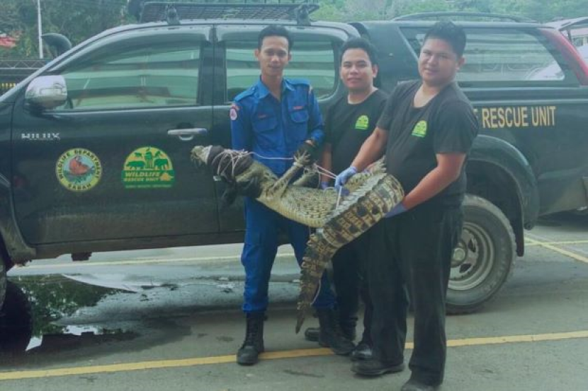 KOTA KINABALU: Seekor buaya sepanjang dua meter ditangkap selepas berkeliaran di depan pusat beli-belah Karamunsing di sini pada awal Sabtu.