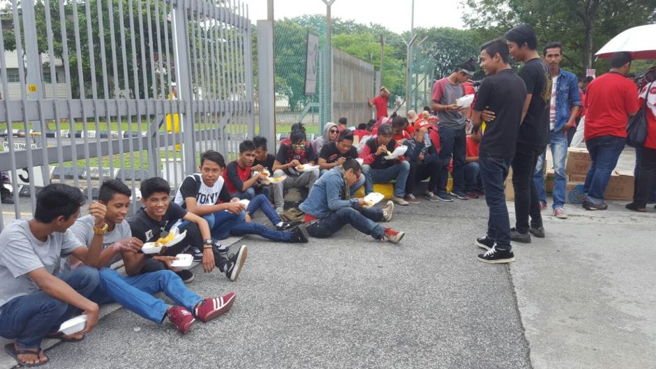 1.45 ptg: Penyokong Baju Merah semakin ramai. Mereka dibawa ke satu tempat untuk berhimpun.