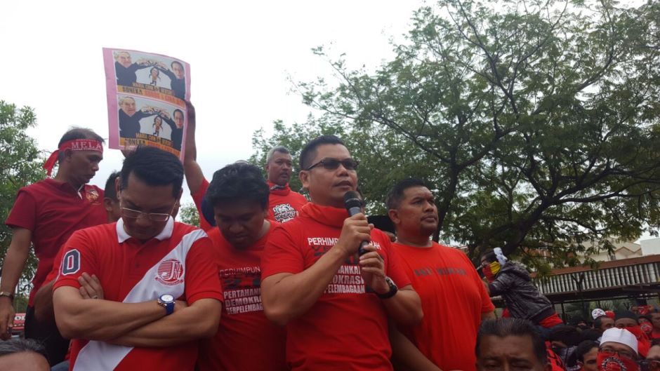2.30 ptg: Peserta perhimpunan masih menunggu ketibaan Pengerusi Gabungan NGO Gerakan Merah Malaysia Datuk Seri Jamal Md Yunos.
