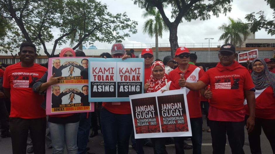 Himpunan yang dikenali sebagai 'baju merah' ini diadakan bagi menuntut penjelasan daripada portal Malaysiakini berhubung sumber kewangan mereka yang didakwa diperolehi daripada Open Society Foundation (OSF) yang dikaitkan dengan jutawan George Soros.