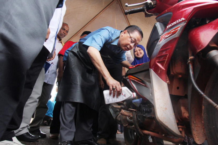 Pada program hari ini, GiatMara turut menyediakan perkhidmatan menukar minyak pelincir (minyak hitam) untuk motosikal penduduk sekitar secara percuma.-- Bernama
