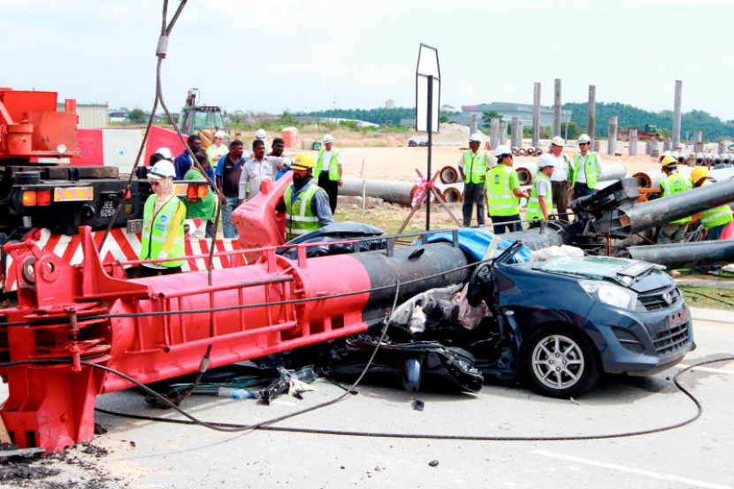 Dalam kejadian pada kira-kira 12.30 tengah hari itu mangsa, Abd Rahim Abd Rahman, 51, dan isterinya Nurhayati Rosli, 46, maut apabila kereta yang dinaiki mereka dihempap jentera pencerucuk besi yang tumbang ketika melalui jalan di Bandar Bukit Raja, Klang.