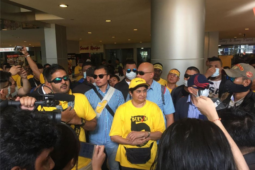 KUALA LUMPUR: Kehadiran bekas Pengerusi Gabungan Pilihanraya Bersih dan Adil (Bersih 2.0) Datuk Ambiga Sreenevasan yang tiba di stesen LRT Bangsar untuk menyertai perhimpunan Bersih 5 disambut meriah penyokong Baju Kuning.
