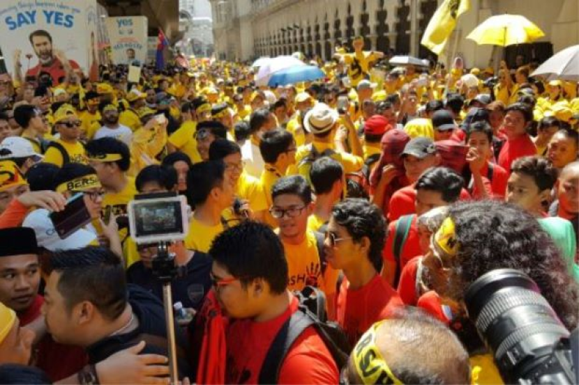 Lelaki itu dilihat cuba melakukan provokasi terhadap penyokong Bersih dan menendang salah seorang daripada mereka sebelum anggota polis berpakaian biasa menahannya.