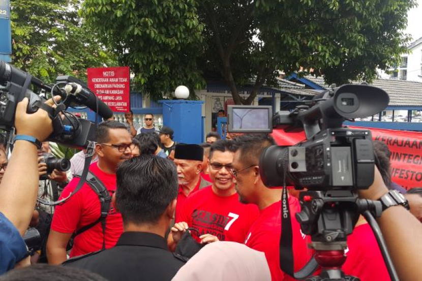 Beliau berjalan keluar dari Ibu Pejabat Polis Ampang Jaya pada tengah hari dan disambut oleh sekumpulan ahli pergerakan Baju Merah.