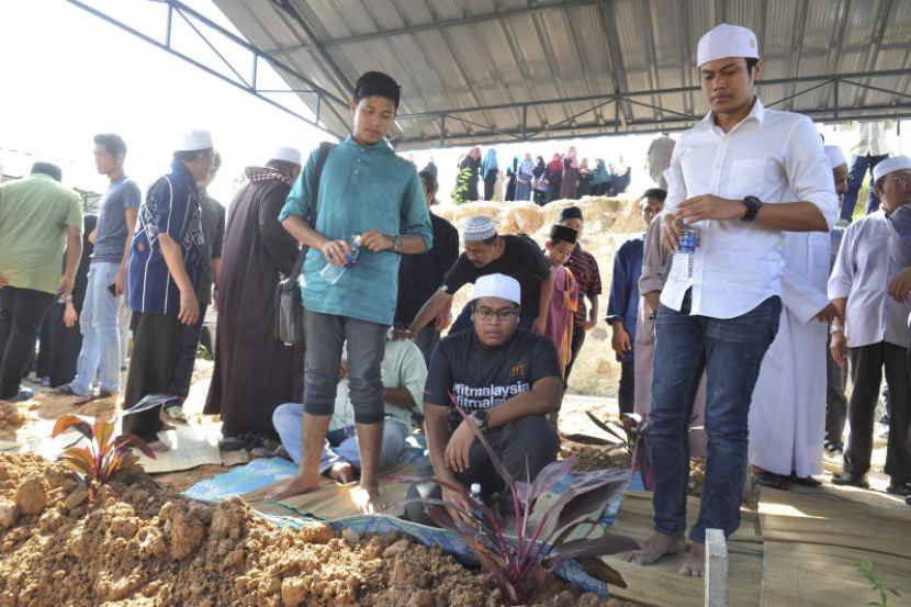 Suasana pilu menyelubungi tanah perkuburan ketika anggota keluarga dan sahabat handai memberi penghormatan terakhir kepada jenazah Syed Redzuan.
