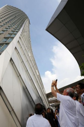 Perdana Menteri merakamkan gambar Menara Kerja Raya pada majlis perasmiannya pada Rabu. -GLENN GUAN/The Star