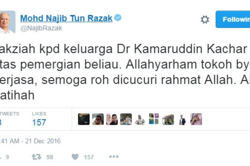 "Takziah kepada keluarga Dr Kamarudin Kachar atas pemergian beliau.