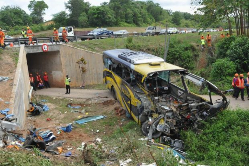 Kejadian kira-kira 3.30 pagi itu turut menyebabkan 16 penumpang lagi cedera selepas bas ekspres itu, yang dalam perjalanan ke Kuala Lumpur dari Johor Bahru, terjunam ke dalam cerun sedalam 10 meter.