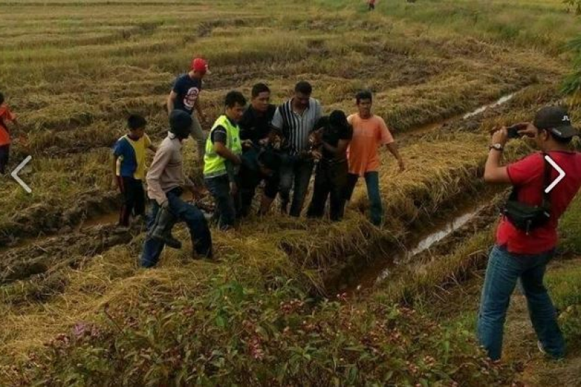 Berdasarkan gambar yang dikongsi dalam laman Facebook itu, kelihatan seorang suspek ditahan oleh orang ramai termasuk polis berpakaian preman di kawasan sawah.
