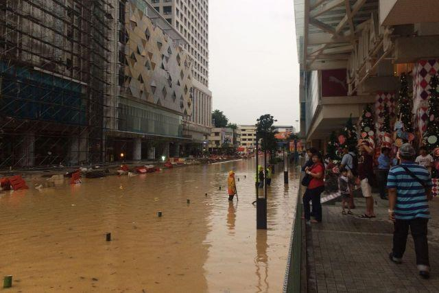 Hujan lebat mula turun dari pukul 3.30 petang Isnin, menyebabkan air naik hingga ke paras lutut.