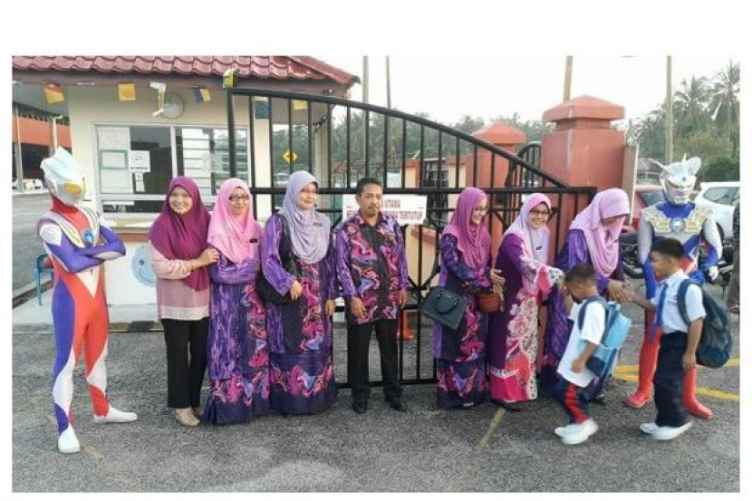 JOHOR BARU: Ingin melihat murid gembira datang ke sekolah, Sekolah Kebangsaan (SK) Sri Rengit, Batu Pahat, dan SK Taman Scientex, di sini, tampil dengan idea menggunakan kostum adiwira dan kartun untuk menyambut kedatangan murid.