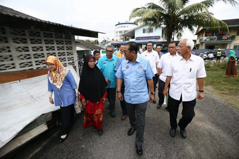 Menteri Besar Johor, Datuk Seri Mohamed Khaled Nordin (tengah) bersama Ahli Parlimen Johor Bahru Tan Sri Shahrir Abd Samad (kanan) melawat Kampung Bakar Batu pada Selasa susulan banjir kilat yang melanda bandaraya Johor Bahru.