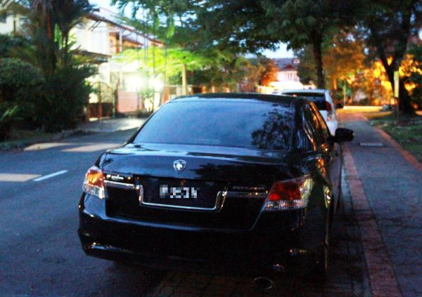 Sebuah kereta jenis Proton Perdana berada di hadapan rumah.