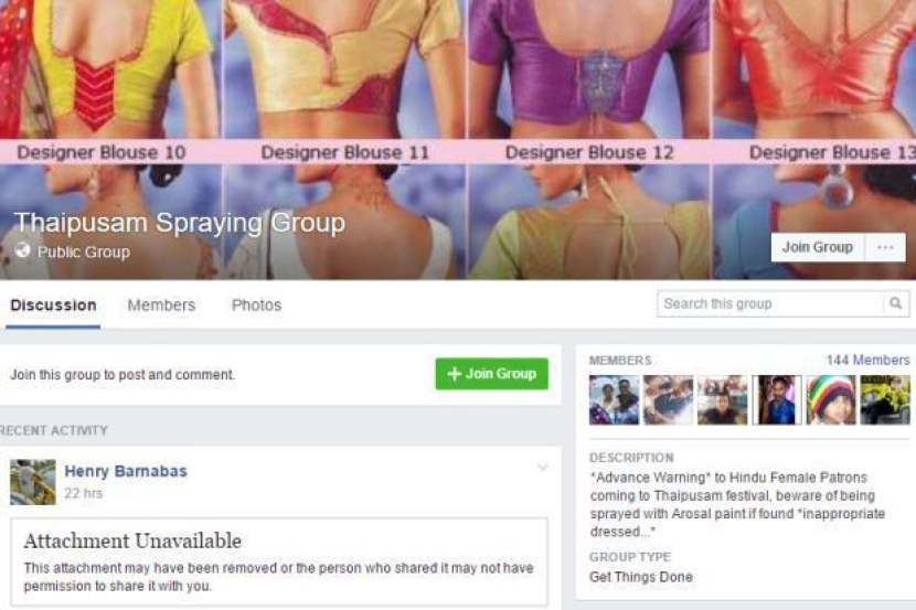 Kumpulan tersebut pada Isnin mengancam untuk menyembur cat pada wanita yang tidak berpakaian sopan semasa perayaan Thaipusam.