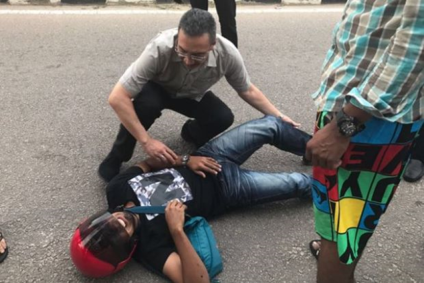Menurut seorang individu yang berada di tempat kejadian, mangsa terjatuh daripada motosikalnya dan terbaring di tepi jalan dalam kesakitan.
