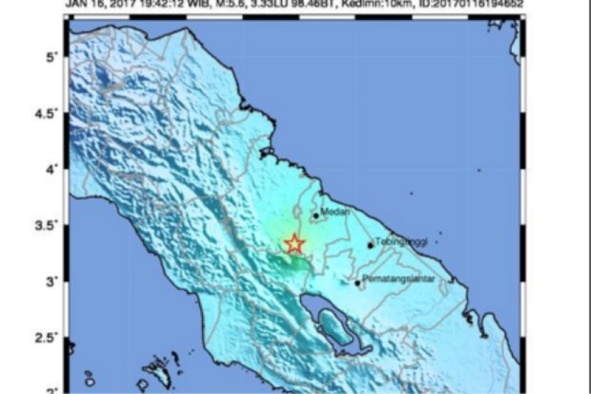 Gempa itu dirasakan di beberapa daerah termasuk Medan, Deliserdang, Binjai dan Karo serta beberapa kawasan di Semenanjung Malaysia termasuk Pulau Pinang. - Bernama