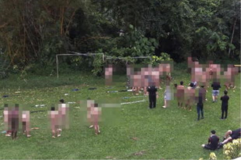 Lelaki berusia antara 19 dan 23 tahun itu dilaporkan menanggalkan pakaian mereka semasa aktiviti kumpulan yang dianjurkan sebuah syarikat swasta kira-kira pukul 6 petang Sabtu.