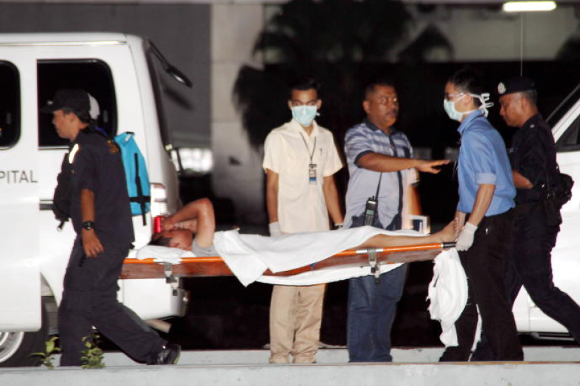Antara mangsa bot karam jenis Catamaran yang dibawa ke Hospital Queen Elizabeth awal pagi Isnin. Bot itu yang membawa 31 orang termasuk tiga kru dan 28 pelancong warga China dipercayai karam akibat cuaca buruk dan laut bergelora. Nahas berlaku kira-kira sejam selepas bot itu bertolak dari Jeti Tanjung Aru 9 pagi Sabtu menuju ke Pulau Mengalum. -fotoBERNAMA