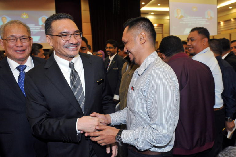 Menteri Pertahanan Datuk Seri Hishammuddin Tun Hussein (dua, kiri) dan Menteri Sumber Manusia Datuk Seri Richard Riot (kiri) beramah mesra bersama pesara tentera selepas Majlis Menandatangani Memorandum Persefahaman Program RPEL untuk Veteran Angkatan Tentera Malaysia (ATM) dari Kelompok B40 di Wisma Perwira pada 2 Februari 2017. - BERNAMA