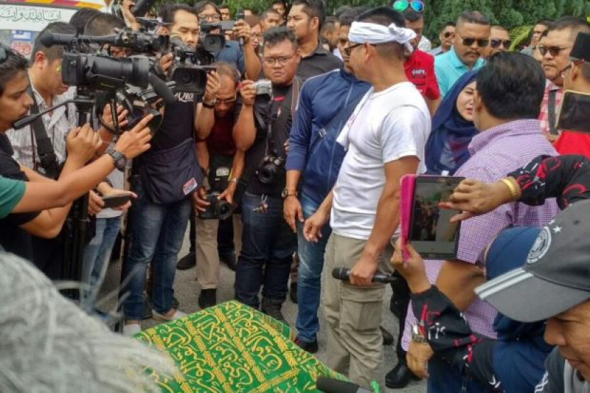 SHAH ALAM: Pemimpin Baju Merah, Datuk Seri Jamal Md Yunos, sekali lagi menarik perhatian ramai apabila mengangkut 16 keranda dalam kereta jenazah ke Bangunan Setiausaha Kerajaan Negeri Selangor disini.