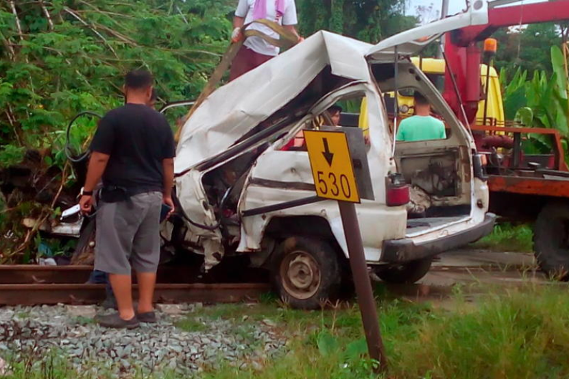 KOTA KINABALU: Tiga orang maut manakala empat lagi cedera termasuk seorang bayi perempuan apabila van mereka bertembung dengan kereta api penumpang yang datang dari arah Kota Kinabalu menuju Beaufort petang Selasa.
