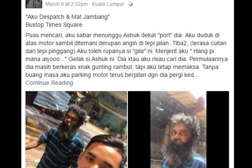 Pemuda berusia 20 tahun yang bekerja sebagai penghantar surat di sebuah syarikat di ibu negara mula disebut-sebut selepas membantu seorang gelandangan menggunting rambut serta mencari pekerjaan untuk seorang lelaki yang di panggil Ashuk.