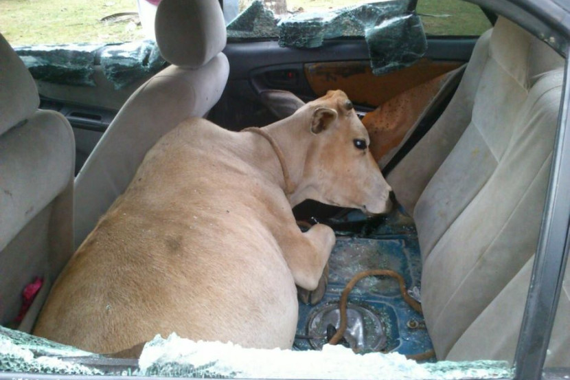 Mohd Amirul menambah penduduk kampung percaya lembu itu telah diberi ubat pelali bagi melemahkannya kerana terdapat ubat berkenaan di dalam kereta tersebut.