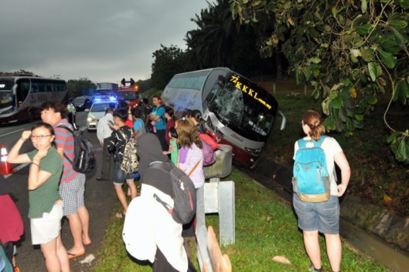"Mengikut laporan awal, kemalangan membabitkan sebuah bas ekspres yang dalam perjalanan dari Johor Bahru ke Melaka dengan membawa 28 penumpang. Kemalangan menyebabkan bas ekspres itu terbabas ke kiri jalan.