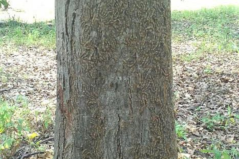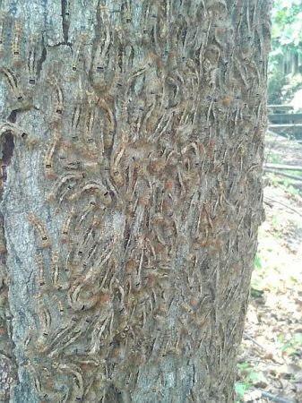 Mohd Hadi berkata, jika dilihat pokok itu pada jarak jauh, ulat-ulat tersebut tidak dapat dikesan kerana warnanya menyamai kulit pokok.