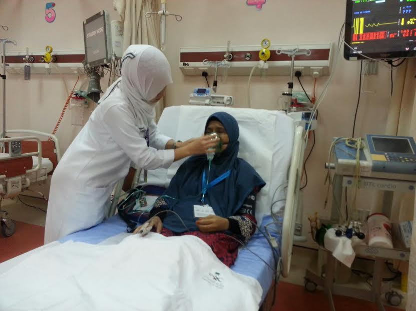 Hajah Jamiah dan kak Norlia diminta baring untuk memudahkan jururawat menjalankan pemeriksaan awal sebelum doktor datang pada mereka.