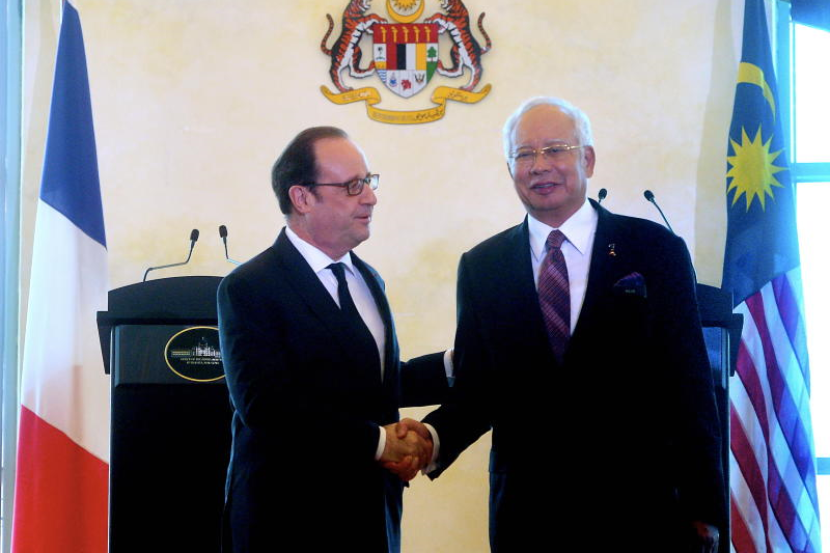 Najib berkata Malaysia mengakui syarikat Perancis memainkan peranan dan mempunyai sumbangan besar, dengan 60,000 rakyat Malaysia bekerja dengan syarikat berpangkalan di Perancis seperti STMicroelectronics, Lafarge dan Technip di Malaysia.